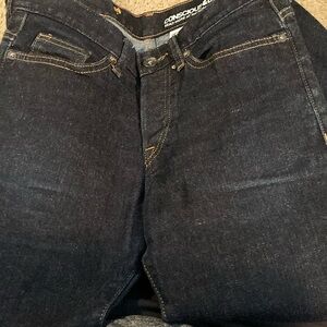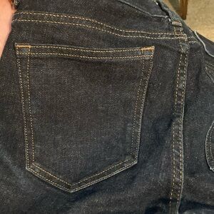 Stylish dark blue jeans with gold stitching. Classic fit. Perfect for any occasion. Like new condition.