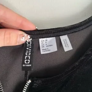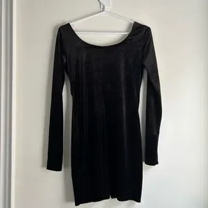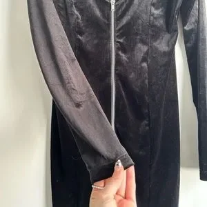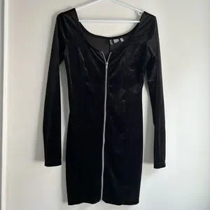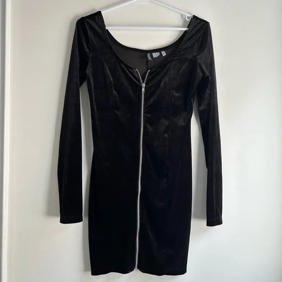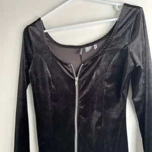 H&M - black velvet mini dress with long sleeves. Zipper front closure. Good used condition, no flaws.