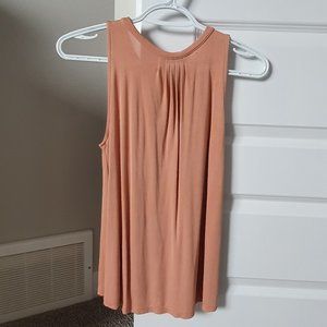 Sleeveless top from H&M in a creamy peach colour. Pleated design in the front and back. Hangs straight, very movable stretchy fabric.