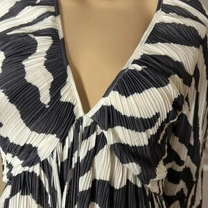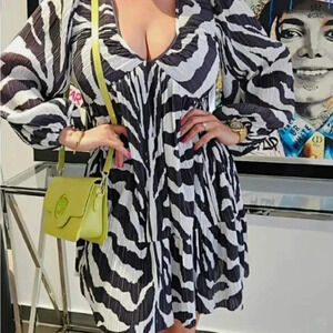 H&M dress,women SMALL,Black & white zebra print crinkle,balloon sleeves, tiered