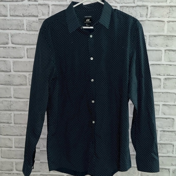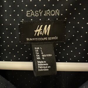 H&M easy iron slimfit men’s long sleeve dress shirt, large polkadot, black white