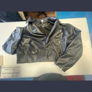 H&M faux black Leather short moto Jacket
