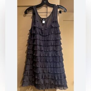 H&M flapper ruffle tunic tank mini dress black tiered above the knee womens s XS