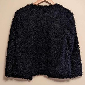 Soft black fuzzy jacket. Great condition. Front zip up. Light weight. Size large