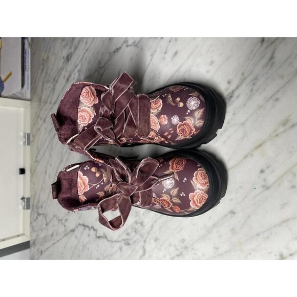 H&M girls floral print burgundy combat boots size 6.5