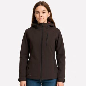 H&M girls softshell Gray lightweight detachable hood fleece lined jacket size 12