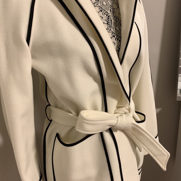 Cream and black accent colour. Wrap jacket. No buttons. Size 6. New without tags.