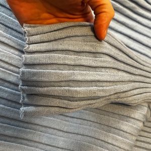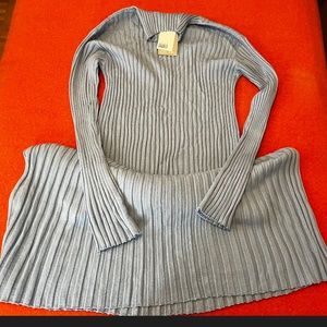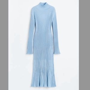 H&M light blue oversized ribbed knit pure merino wool maxi dress new with tags. Soft, ribbed 100% merino wool jersey (not itchy at all in my opinion), mock turtleneck, dropped shoulders, long sleeves with gently flared cuffs, gently flared skirt with a straight hem, unlined. Colour is accurate in the stock photos, mine are taken in artificial light, sorry about that. So soft, warm and elegant, coziness overload for the Winter! Marked size M but fits oversized in my opinion, please see measurements (it’s very stretchy and the sleeves are pretty long). All measurements are approximate and taken with the garment laying flat: Armpit to armpit 22.5" Total length 48" Sleeve from shoulder 24.5’’. This item comes from a smoke free, pets friendly home. Recycled bags/box used when possible. Please, let me know if you'd like any additional pictures and/or measurements or other info. Thanks for looking!