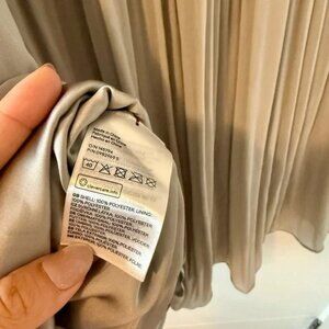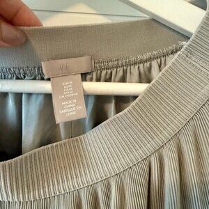 Beautiful light gray-green, calf-length skirt in pleated chiffon with a high, elasticated waist. Satin lining.