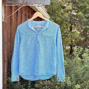 H&M linen mix Grandad Shirt - Size CA 12-13A - 1/4 button - blue/white - XS/S