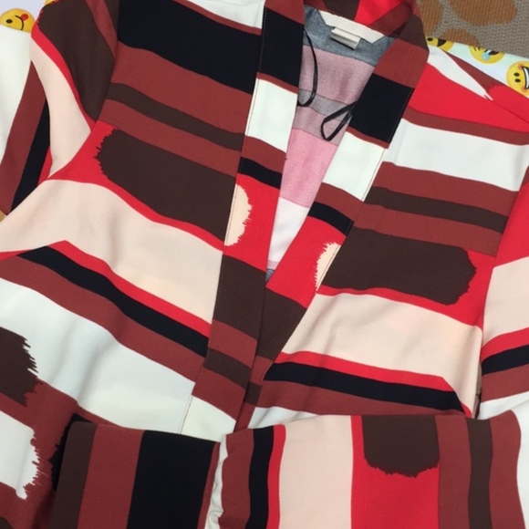 H&M dress with long sleeves and plunging neckline. This pattern is amazing and very easy style! Great for summer months to throw on for work, top fits like a dress shirt with an elastic waist and pleated skirt front. Colors are great and can go into the fall months with leggings and boots.