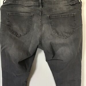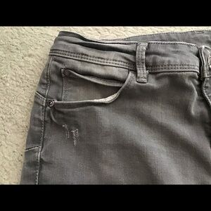 These grey-wash, low waist jeggings have light distressing near the pockets and are in excellent condition.