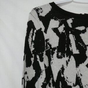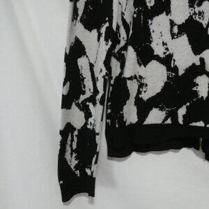 Stylish black and white patterned sweater with long sleeves and a comfortable fit