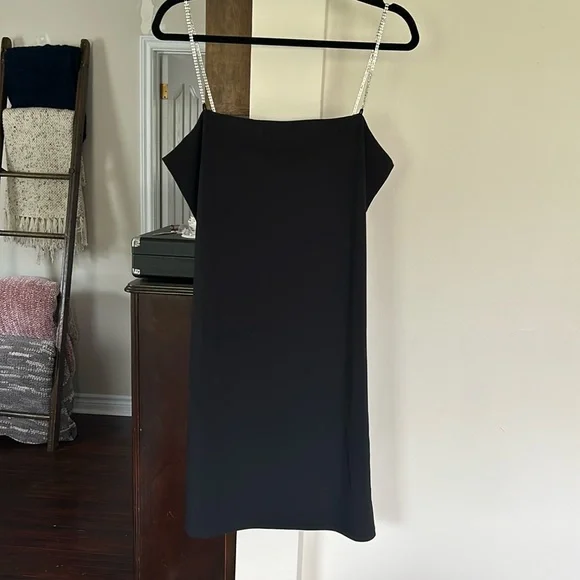 H&M mini dress with rhinestone straps Size L Worn once ***MAKE ME AN OFFER. I WILL USUALLY ACCEPT IT***