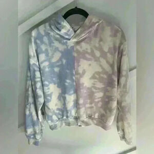 Comfortable, oversized sweatshirt hoodie in lightweight fabric with a double-layered, wrap-front hood. Heavily dropped shoulders, long sleeves, and ribbing at cuffs and hem.