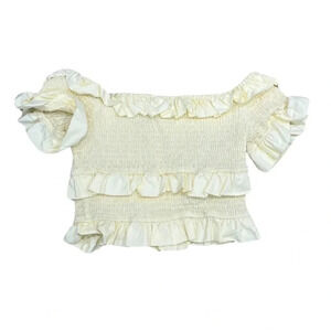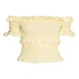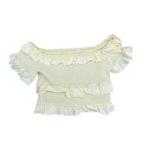 H&M pastel Yellow Off The Shoulder Frilled Stretchy Cropped Top Size 4