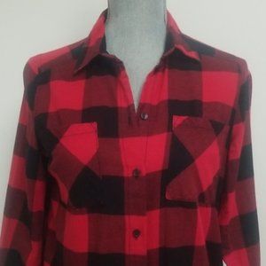Cozy plaid button down shirt from H&M is perfect for fall! Soft cotton twill fabric. Features a collar, chest pockets, long sleeves with button cuffs. Flattering fit with darts at chest and rounded hem with slits at sides, and slightly longer back section.