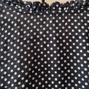 Cute polka dot dress. Ruffled neck. Black and white. Open back with one button at the nape.