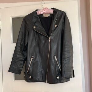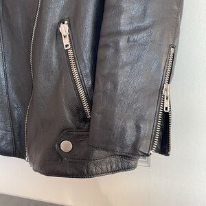 This jacket has been worn, but no major flaws and lots of life left! 100% leather, lining 100% cotton.