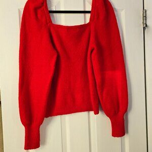 Red statement sleeve sweater with square neck. Worn a few times, very good condition. Purchased with natural pilling.
