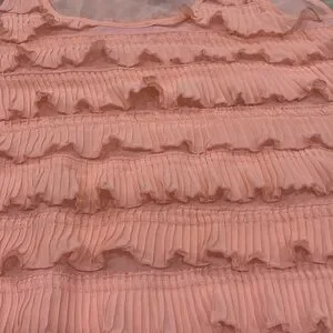 Super cute pleated layered ruffled top in a peach colour with sheer fabric at the top made out of polyester Pit to pit 19” Length 30”