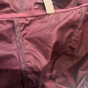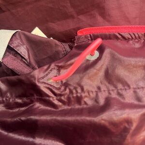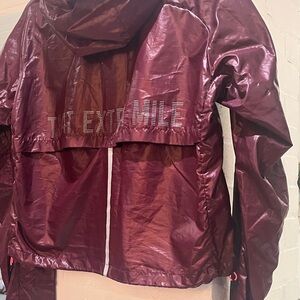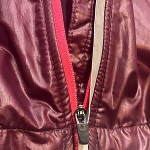 Lightweight burgundy jacket with zip closure. Ideal for layering. Windbreaker for running—can also be worn as everyday wear. Breathable and equipped with a hood.