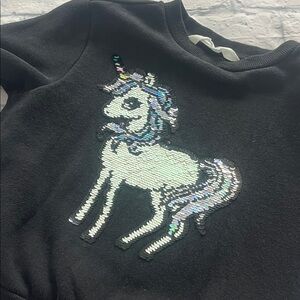 This adorable black sweatshirt features a charming unicorn design, perfect for adding a touch of magic to your child's wardrobe. Soft and comfortable for everyday wear.
