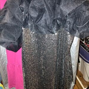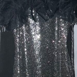 Sequin mini dress, black ruffle at top. Worn once. NEW PHOTOS of back same as front