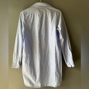 H&M, size 8, pleated blue long fitted, long sleeve button down dress shirt