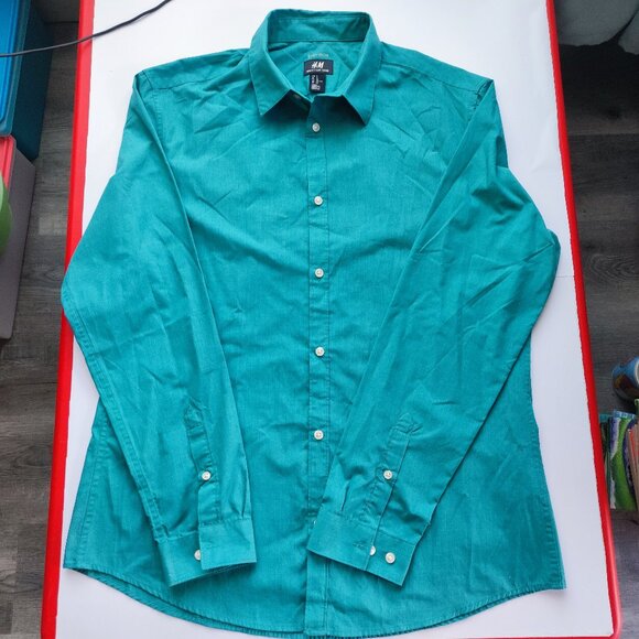 H&M slim fit dress shirt easy-iron teal men's size XL