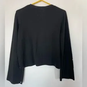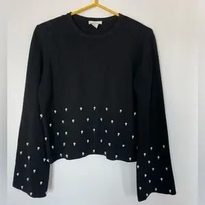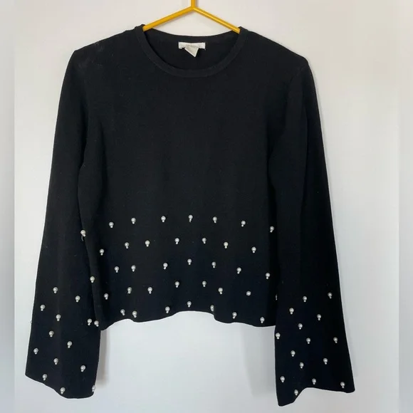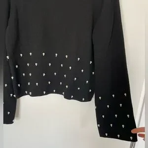 H&M black sweater with pearl like sequence. One of the tiny beads is missing from the bigger bead as can be seen in the last picture. Size small. Great condition.