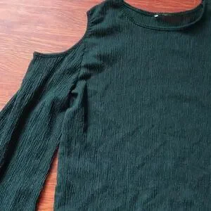 emerald green crepe material cold shoulder top with bell sleeves