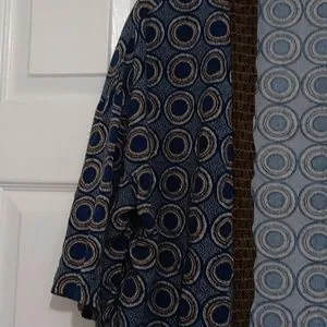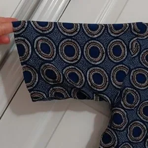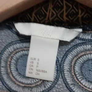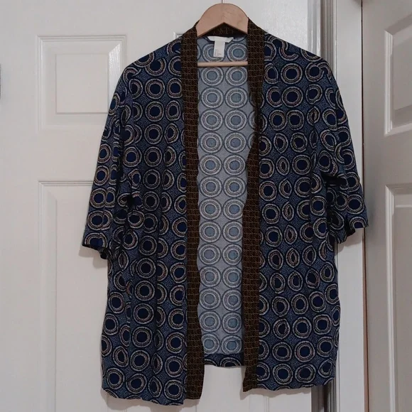 blue ethnic print open front flowy blouse by H&M pit to pit: 23" shoulder to hem: 26" sleeve: 9.75" T6