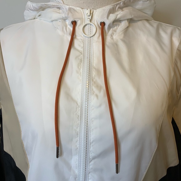 This three tone windbreaker is as comfortable as it is stylish. With a drawstring waist. Never worn!