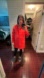 Eye-catching red trench coat. Sleek design with button closure. Ideal for a stylish look. Above knee! More red orange ish