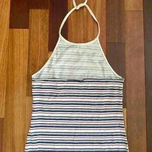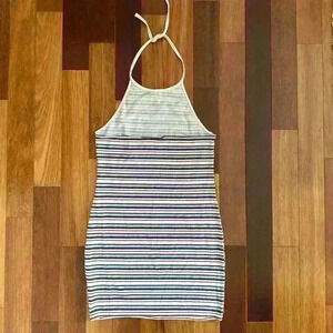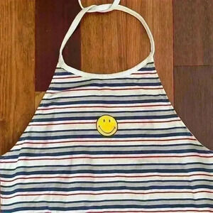 H&M x Smiley | striped happy face halter top mini dress red white blue size leg