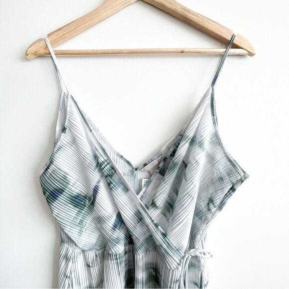 H&M Dress Wraparound Gauzy Midi Tie Dye Women's M V-Neck Green Black White NWT