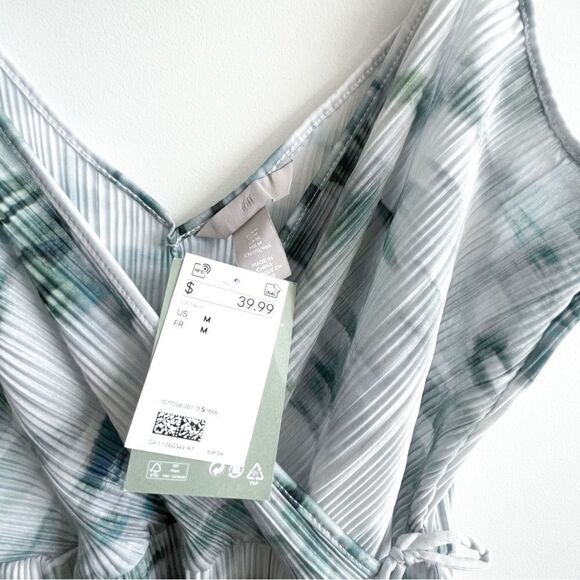 New With Tags: H&M Dress Wraparound With Tie40 Gauzy Tie Dye Women's M V-Neck Midi Green/Black/White. Recycled Polyester. Please see photos for approximate measurements.