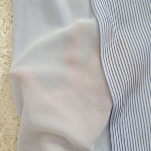 Beautiful sheer blouse with pleated front panel and lace detail. Excellent condition!