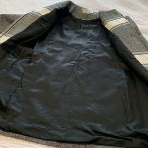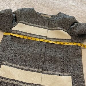HOBBS LONDON car coat with zippered front, fully lined jacket, boucle coat, grey and white stripes/color blocking, cotton blend, size 6US/UK 10 (fits larger than US6 IMO -see measurements). Hobbs London is a favourite brand of Kate Middleton (pictured). Like new condition