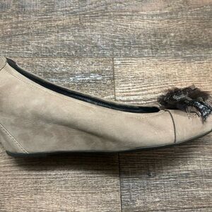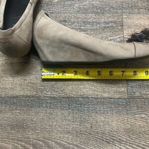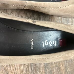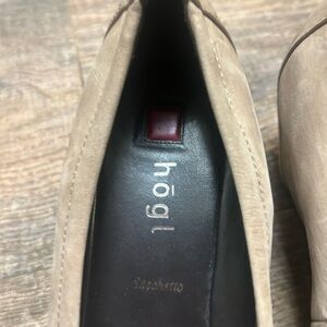 HOGL NWOT size 7 These wedge pumps feature a sophisticated suede-like material and a stylish embellishment at the toe, adding a touch of elegance to any outfit. The classic heel design ensures both comfort and style, making them a versatile choice for various occasions- feather stone accents.