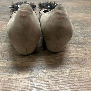 HOGL NWOT 7 Suede wedges with stone/feather embellishments