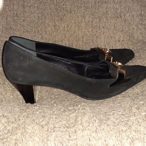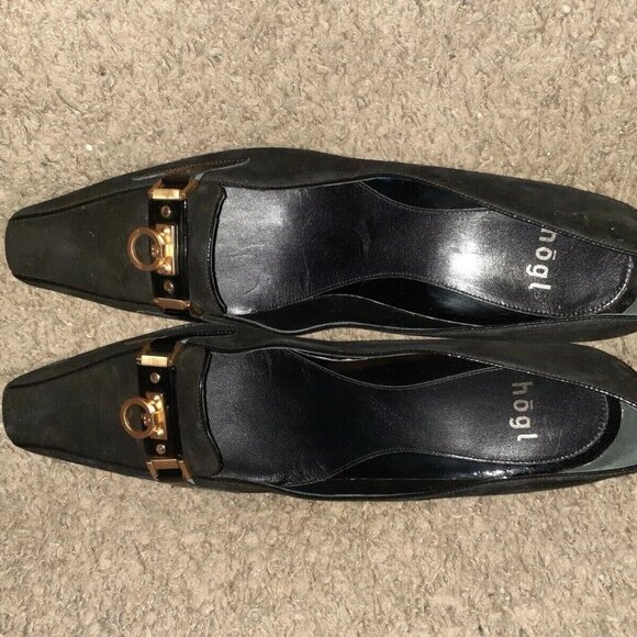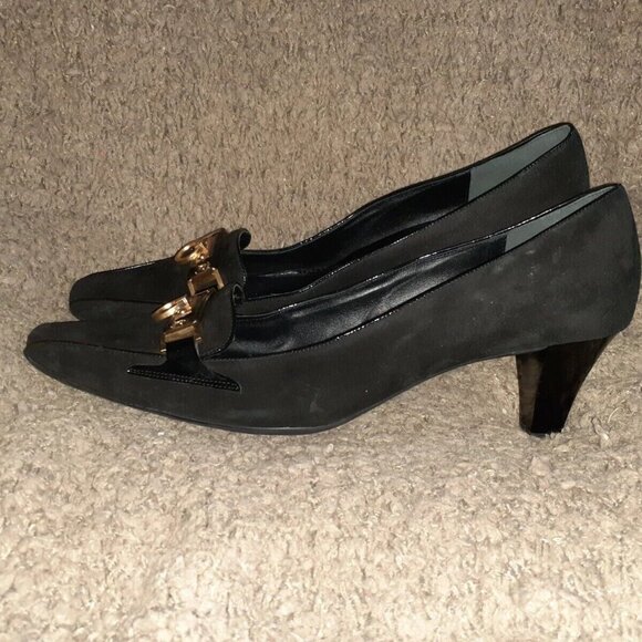 HOGL-Black Suede-Gold Embellishment on Vamp-Gorgeous-Small Heel-Sz 12-Near Mint