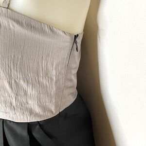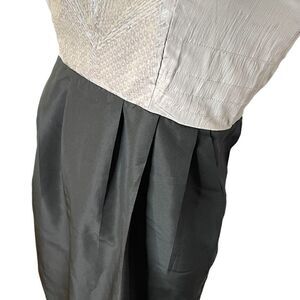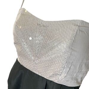 Fantastic party dress with clear sequin on bodice, back elastic smocking, pockets and adjustable straps. Side seam invisible zipper opening.
