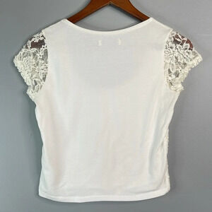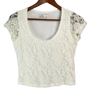 HOLLISTER Lace Overlay Crop T-Shirt Ivory White L