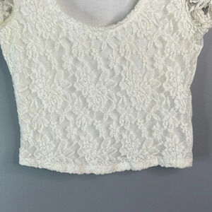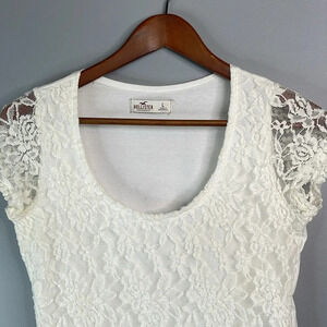 Womens ivory over white Hollister Lace Overlay Cropped Tee.