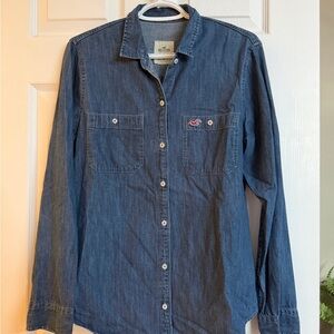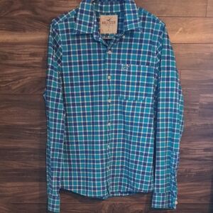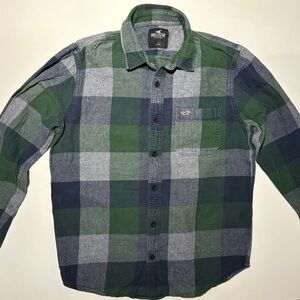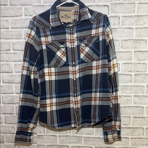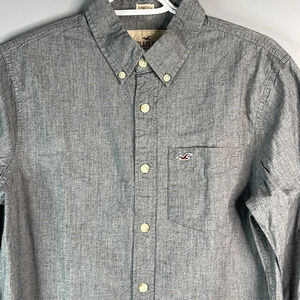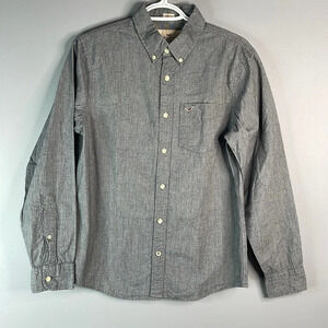 HOLLISTER Mens Preppy Button Down Shirt Bluish Grey Stretch Long Sleeve Size S