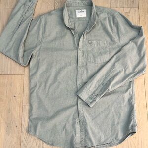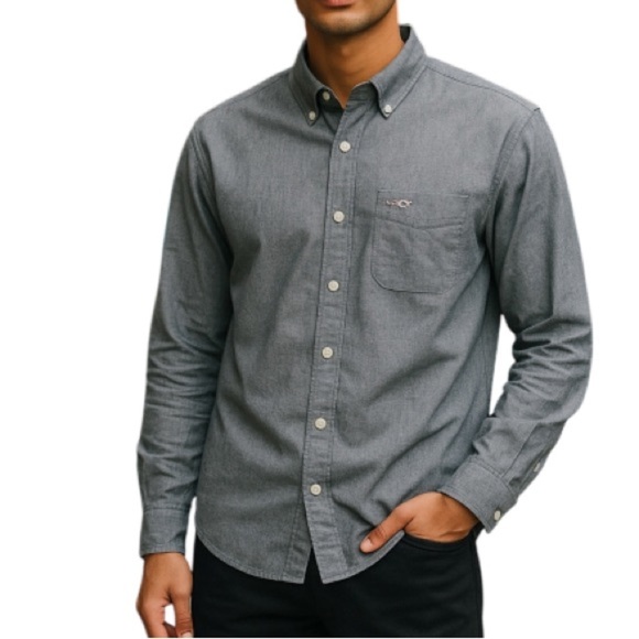 HOLLISTER Mens Bluish Grey Heathered Cotton Stretch Blend Long Sleeve Button Down Shirt.