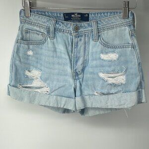 Hollister high rise mom jean shorts 3” light denim distressed beach summer sz 25