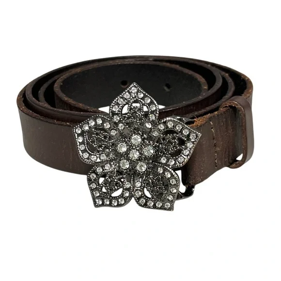 HOLT RENFREW Rhinestones Floral Leather Belt